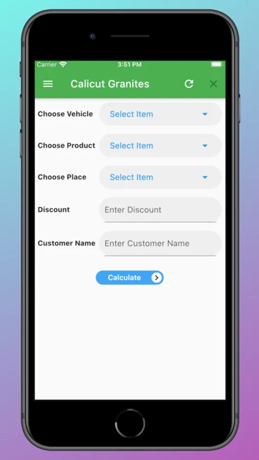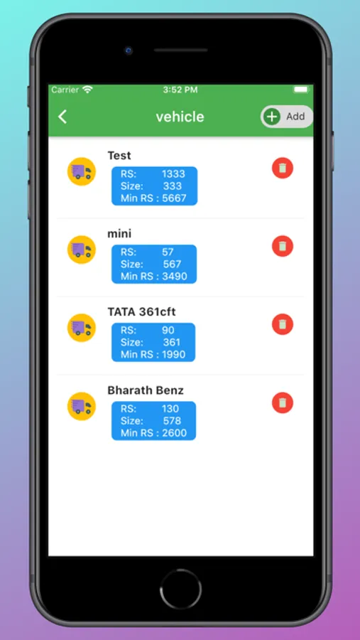 User can added vehicle details, product details and place details so that they can calculate rate.