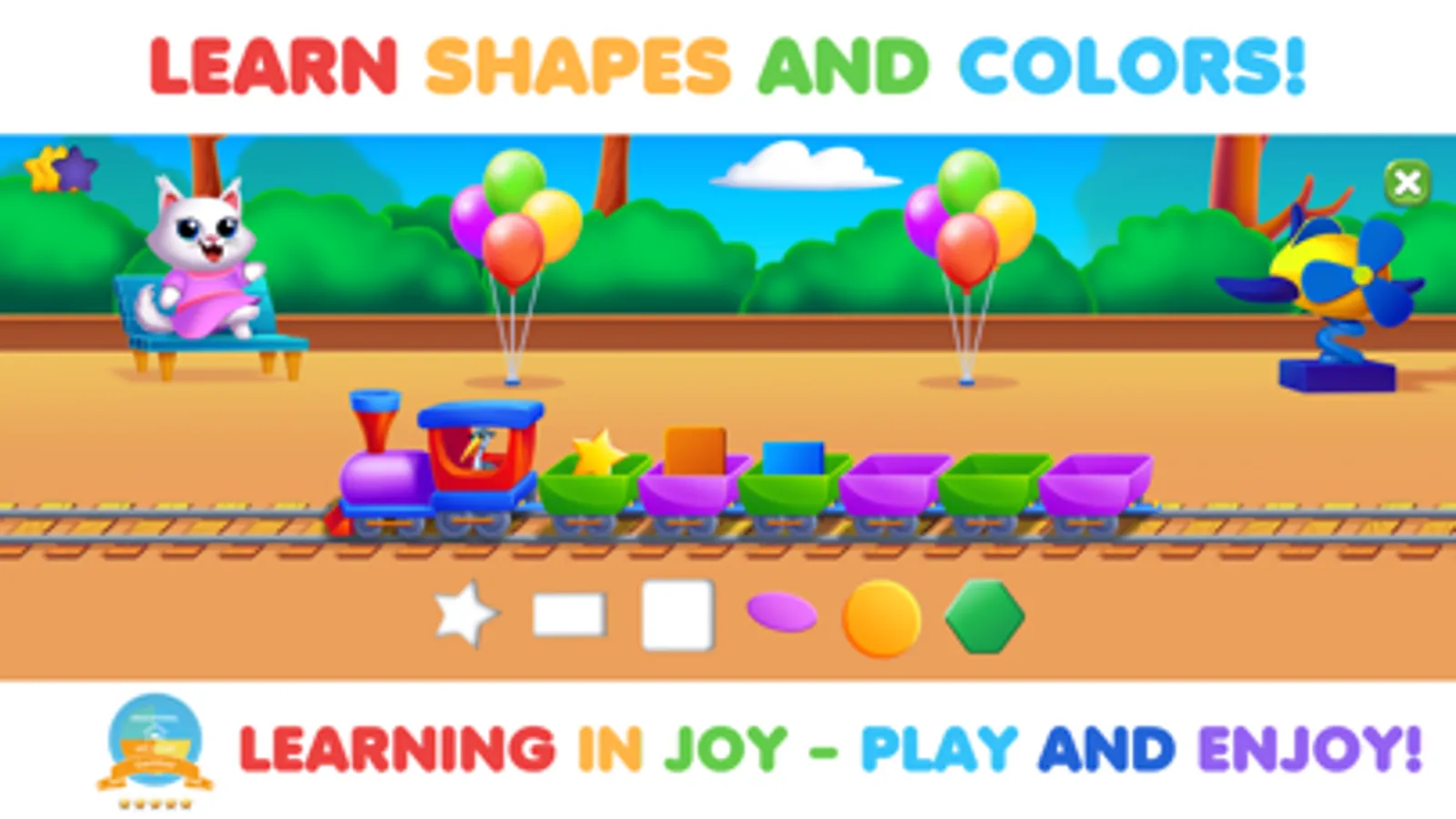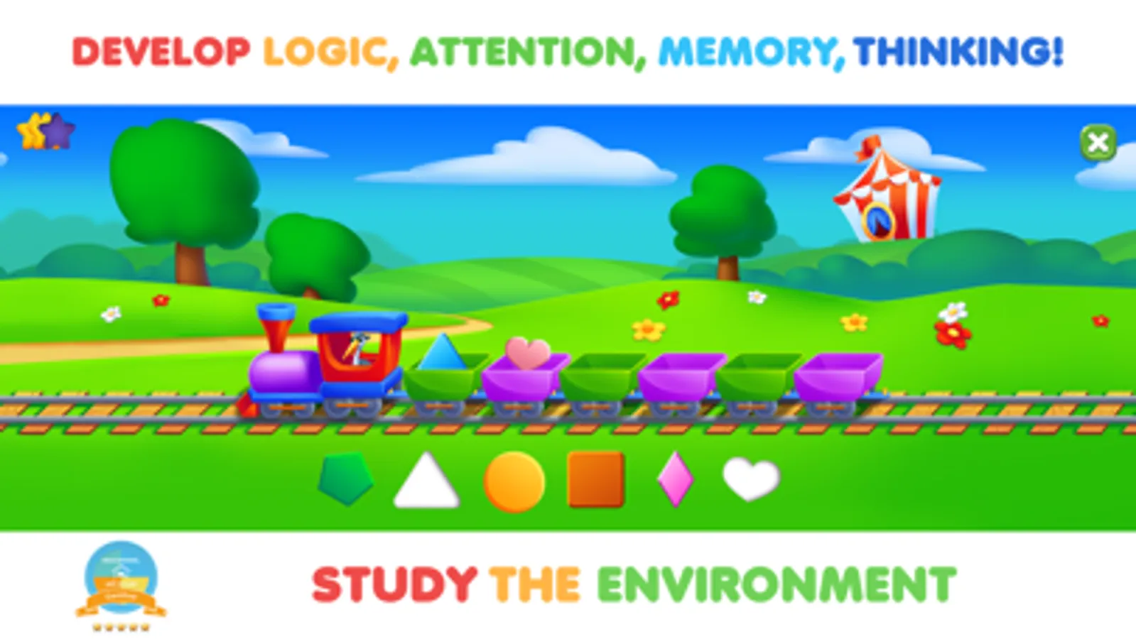 Fun app for toddlers Smart Wheel & Train invites your kids to the Moscow amusement park! Here children will learn and strengthen their knowledge by playing on their favorite attractions: "Smart Ferris wheel," "Fast train," and, "Funny carousel" with animal figures. Each attraction features 3 levels: Numbers, Letters, and, Shapes of different colors.