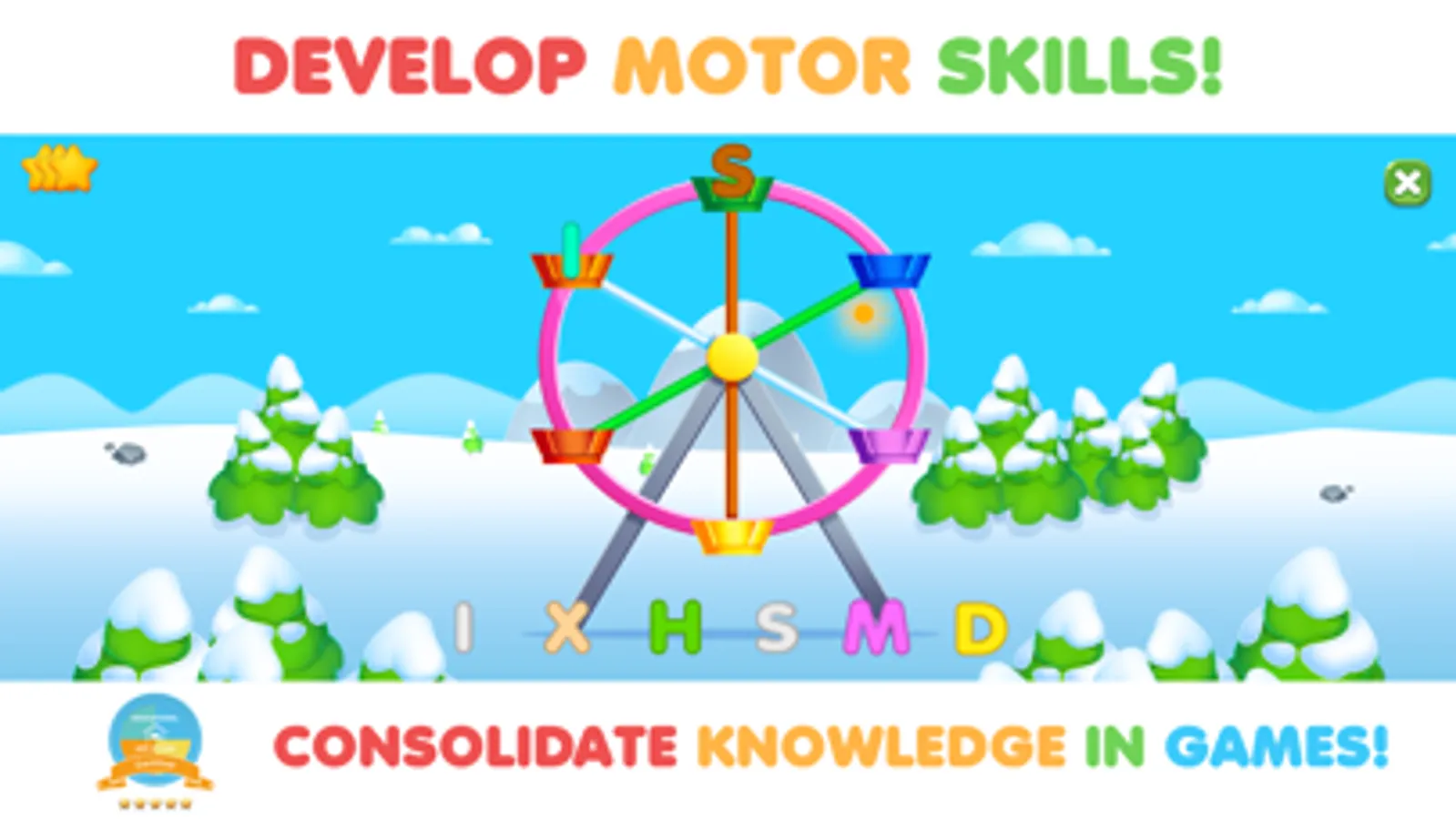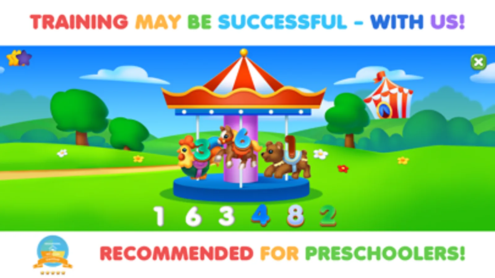 Game’s user interface is simple and fun for preschoolers. Kids learn numbers, letters, and shapes quickly and easily without stress, time, limits, or ads.