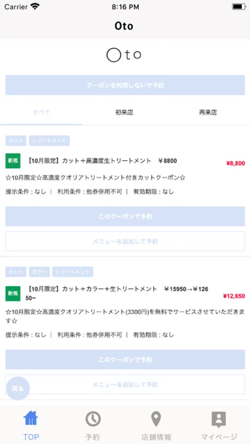お得なクーポンが配信されます。ネット予約時にクーポン利用での予約も可能なので来店時もスムーズに施術頂けます。
