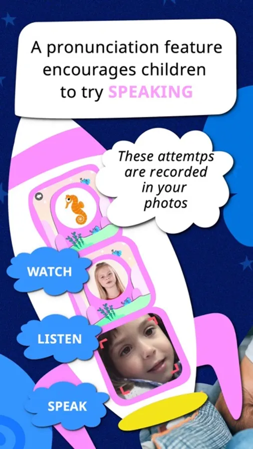 • Our ‘Repeat’ feature helps children overcome shyness and start speaking.