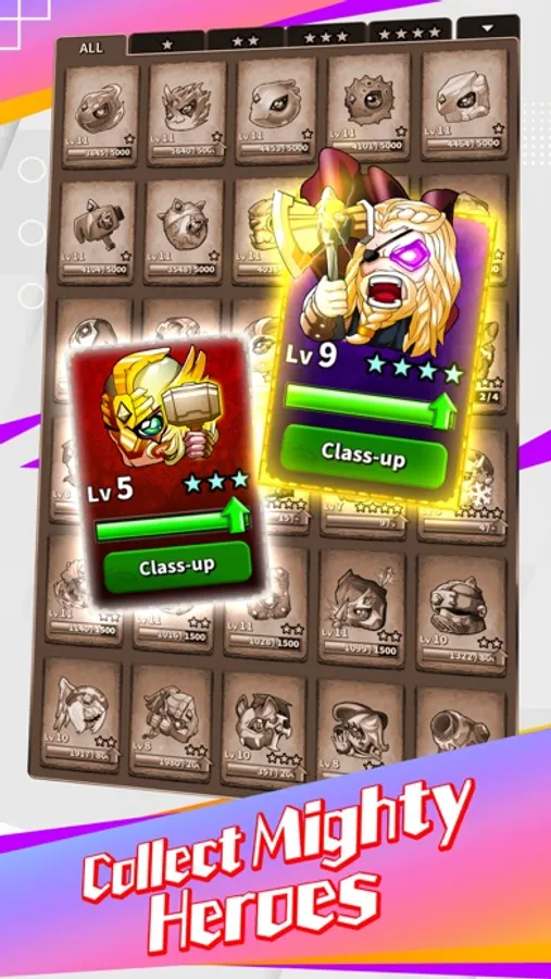 Collect favorite hero and class-up dozens of Magic Stone Hero featuring 4 main types including Force, Magic, Combine, and Assist.