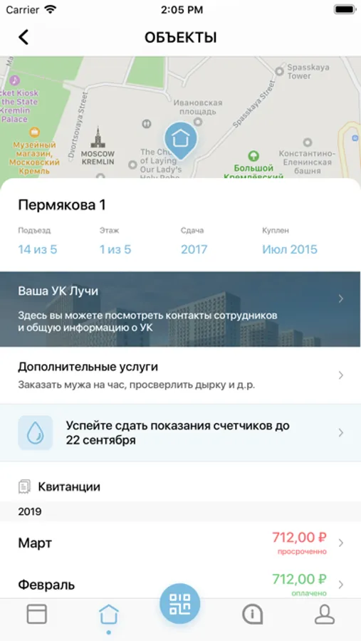 • передача показаний индивидуальных приборов учета• оплата квитанций и дополнительных услуг