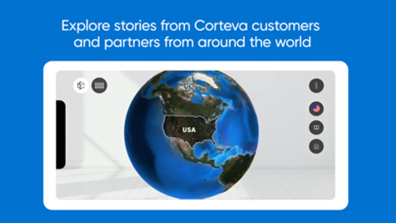 Witness the future of agriculture on a global stage. Embark on an interactive and immersive AR learning experience to discover more about Corteva’s impact on agriculture. Watch stories from farmers all around the world and discover how we work with producers to create an agricultural ecosystem that naturally supports people, progress, and the planet.