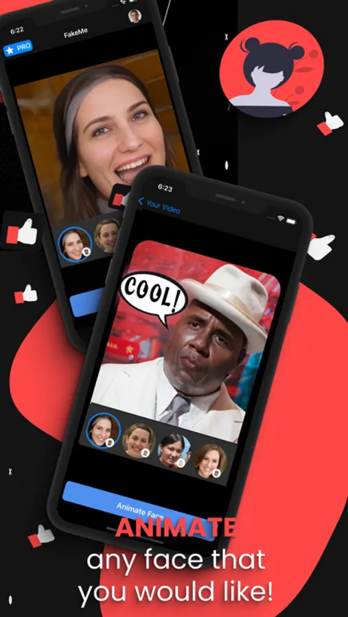 But that's not all – FakeMe also lets you add facial expressions and movement to your photos with our unique face animation feature. Simply select the face you want to animate and use our tools to add a range of different expressions and movements. The possibilities are endless!