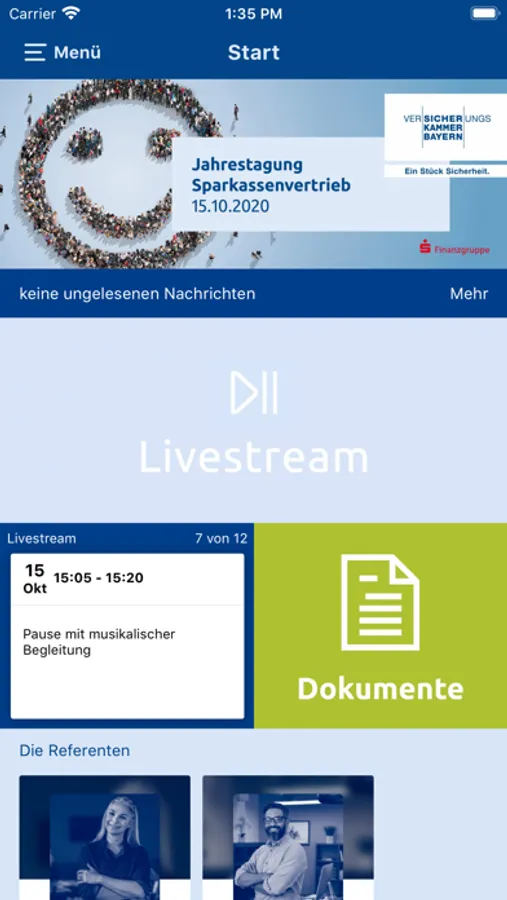Die Versicherungskammer EventApp bietet eine Vielzahl an Möglichkeiten, um Veranstaltungen digital erlebbar zu machen, auch über die Teilnahme an LIVE-Streams.