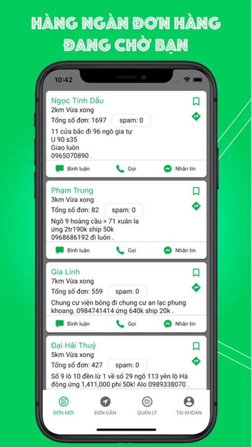 • Bình luận, Gọi, Nhắn tin trực tiếp đến chủ shop hoàn toàn miễn phí