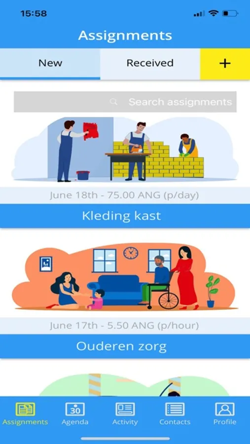 The main resource of Kòrsou Connect is a smartphone app. Clients can place assignments in this app and job seekers can make a choice from the current range. In this way a match is quickly created.