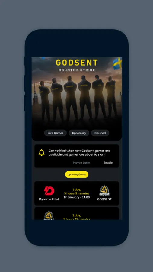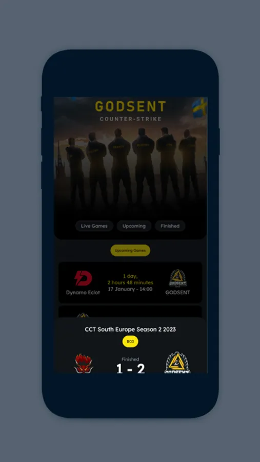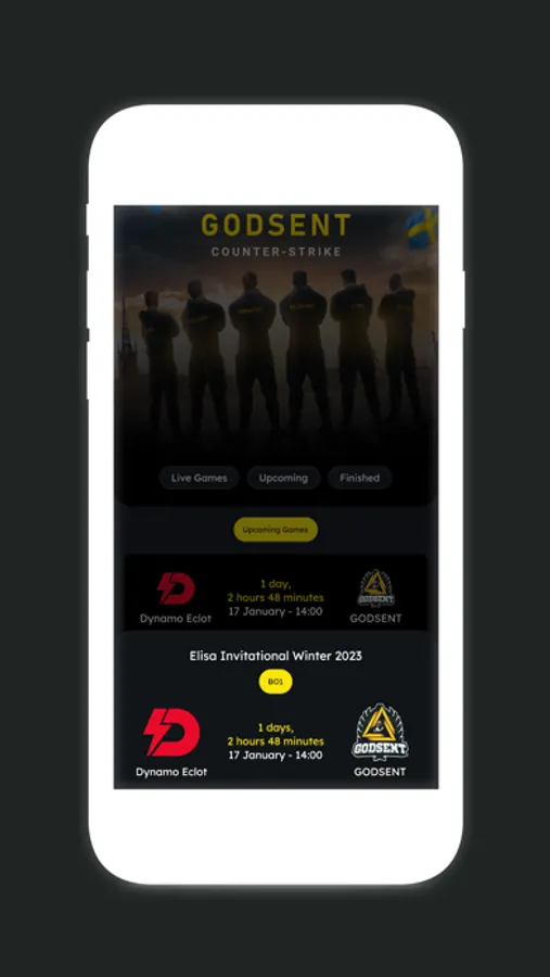 Keep up to date on upcoming and previous CS:GO games for the Swedish esport power-house; Godsent.
