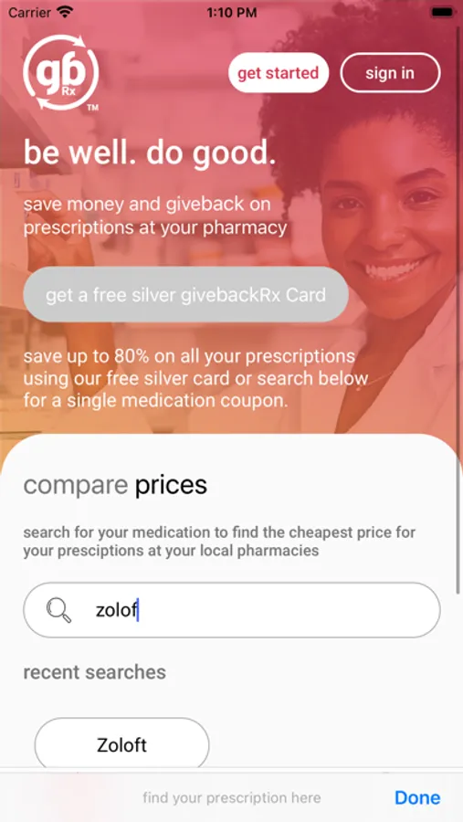 Free Coupons: Search for your medication and print out your free coupon. Take it to over 65,000 pharmacies and receive the discount automatically. Purchases are anonymous without a membership, and non-member donations donations are directed to the givebackRx Charity of the Month.