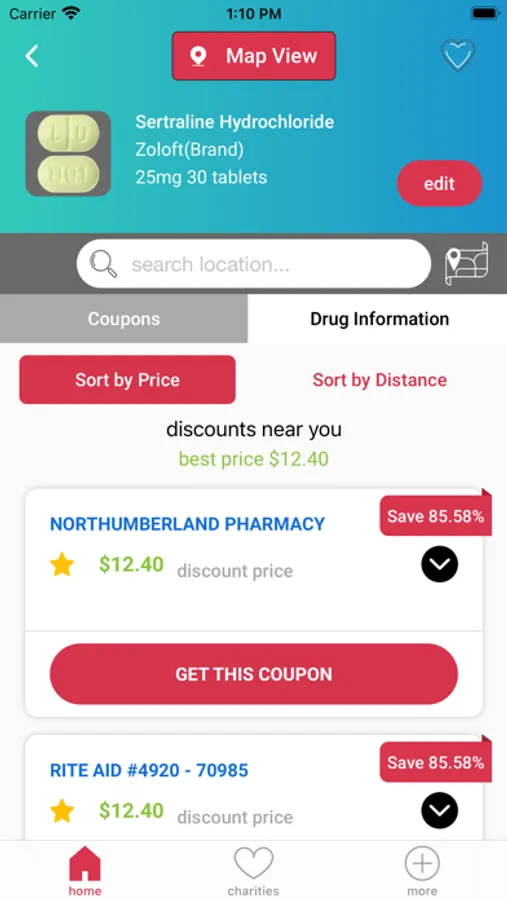 Free Charity-Specific Discount Card: Anyone can save using the charity-specific discount card. Just navigate to the card under “Charities” within the app. Select your favorite charity and show the card to your pharmacist. When the pharmacist inputs your card number, you receive savings automatically and the charity benefits from a donation. Your purchases will remain anonymous and receipts are not shared online.