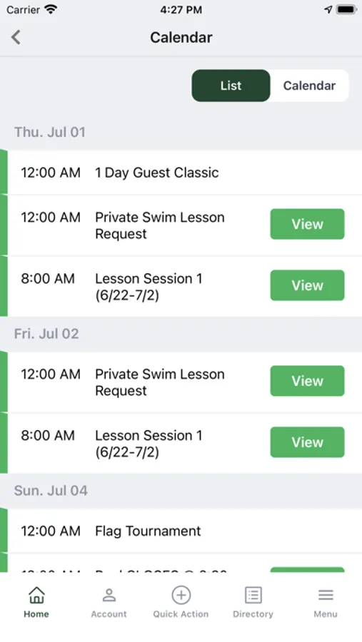 - View calendar of events and sign up