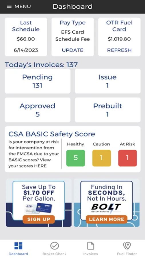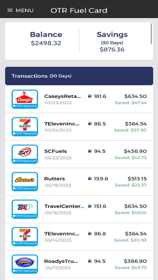 • Fuel Up and Save: Fund your OTR Fuel Card right from the mobile app. Stay on top of in-network fuel locations on your route using Fuel Finder for ultimate savings.
