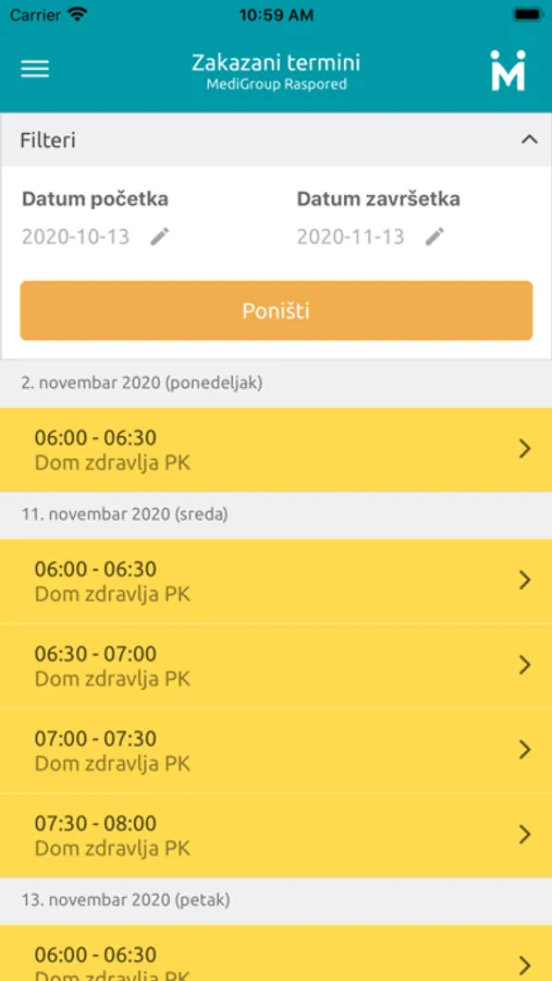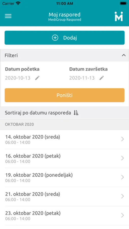 Aplikacija za efikasno upravljanje radnim vremenom i terminima MediGroup lekara konsultanata. Aplikacija MediGroup Raspored omogućava jednostavno kreiranje radnog vremena, izmene i uvid u zakazane termine.