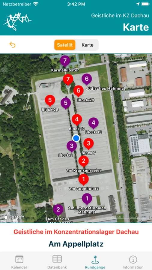 This app was published by the Catholic Chaplaincy at the Dachau Concentration Camp Memorial Site and the Department of Remembrance and Memorial Work in the Archiepiscopal Chancery of Munich, and thus the Archdiocese of Munich and Freising, which also finances it.