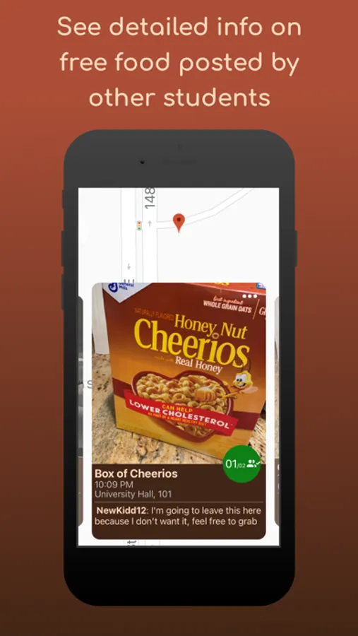 With FreeEats you can easily find and share real-time info on free, leftover food on your campus that would otherwise end up in the trash.