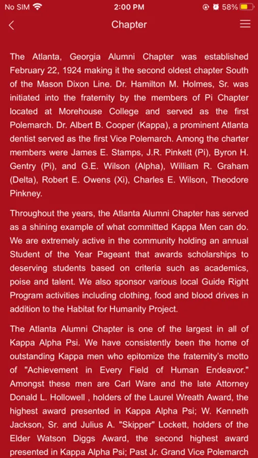The mobile app for the Atlanta Alumni Chapter of Kappa Alpha Psi Fraternity, Incorporated is a place for brothers to stay updated about meetings, events, and happenings within the organization. Also, you can use this app to view the history of Kappa Alpha Psi, to access chapter documents, to stay connected with our social media sites (Facebook and Twitter) and much more.