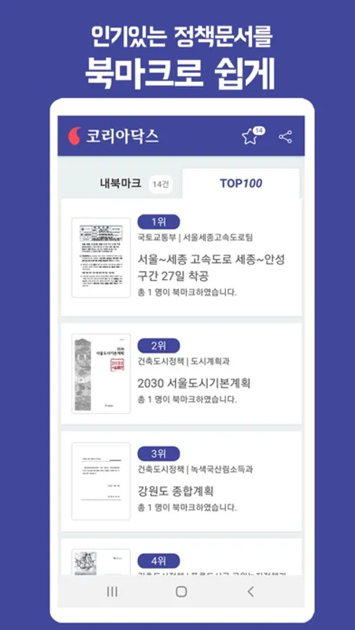 - 정책 문서 북마크 및 알림