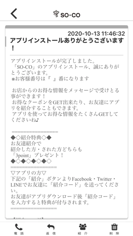 SO‐COのアプリをSNSを通じてお友達に紹介する事ができます。