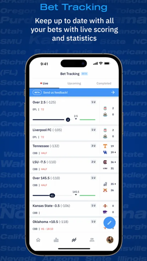 Track picks across multiple sports and leagues, including: NFL, NCAAF, MLB, NBA, NCAAB, NHL and English Premier League.