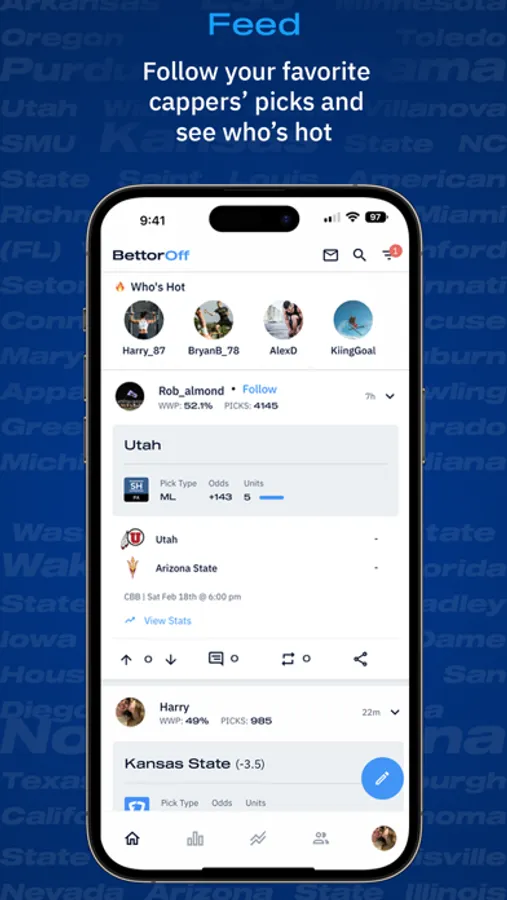 Instead of doing it alone, follow other bettors to level up your sports wagering strategy. Public stats and pick histories allow users to determine who the real experts are.