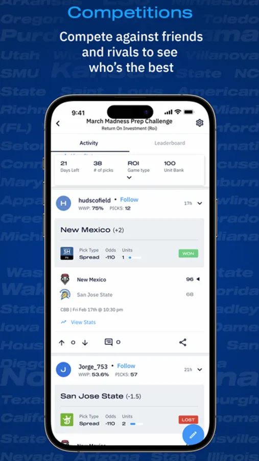 Even if sports betting isn’t legal in your state, you can still test your wagering chops by posting your picks for free. Show you have what it takes and you can sit atop our Leaderboard, gaining followers, notoriety and respect from the wagering community