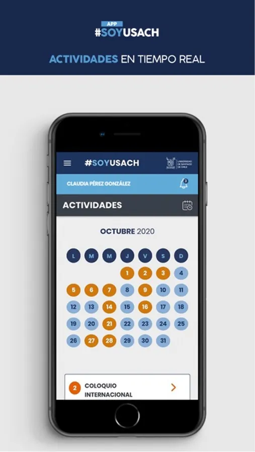 Sección de la App con el Calendario de Actividades de las distintas unidades de la Universidad.