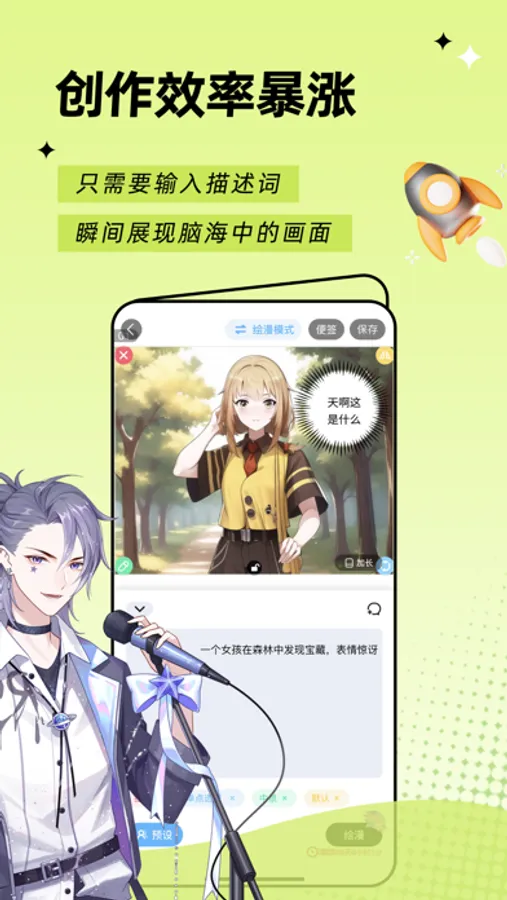 Whether you're an anime enthusiast or a novice creator, it doesn't matter. "Chuman" will assist you in effortlessly creating your own comic works. With our one-click drawing technology, all you need to do is simply outline a sketch or input a description, and you'll see the details of the artwork becoming richer, colors vibrant, and compositions more professional. A plethora of materials await your selection – whether it's sci-fi, historical, modern, or school-themed, the choice is yours. Open up your imagination and create your unique masterpiece. Try it now and experience the ease of creation!