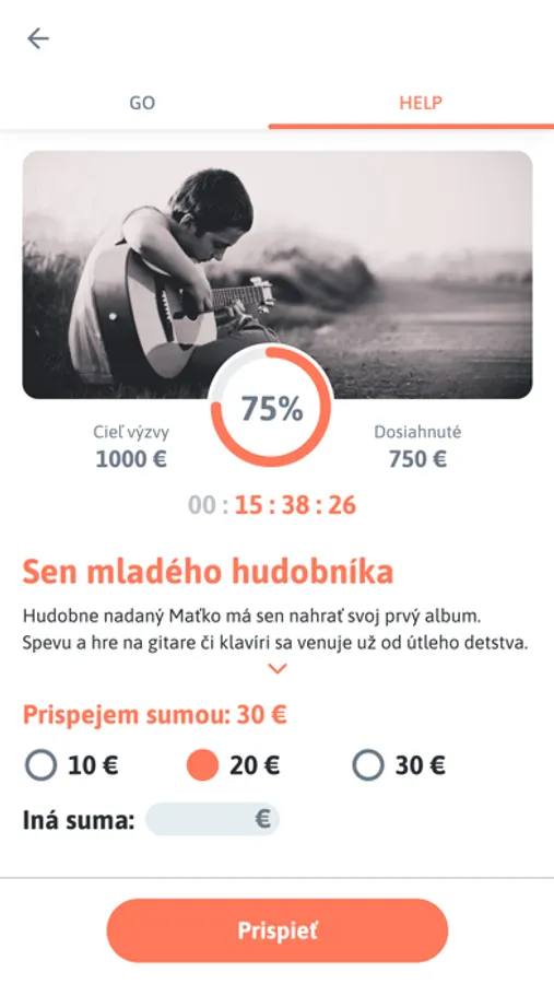 Zaregistruj svoju výzvu na pomoc v Go2Help. Po jej overení ju zaradíme do zoznamu výziev, ktorú následne môže ktokoľvek podporiť. Následne zdieľaj link z aplikácie a podpor svoju zbierku u svojich blízkych a priateľov.