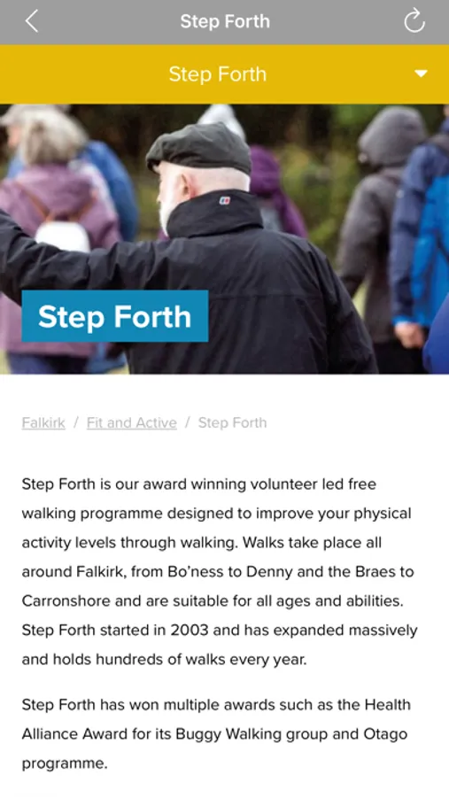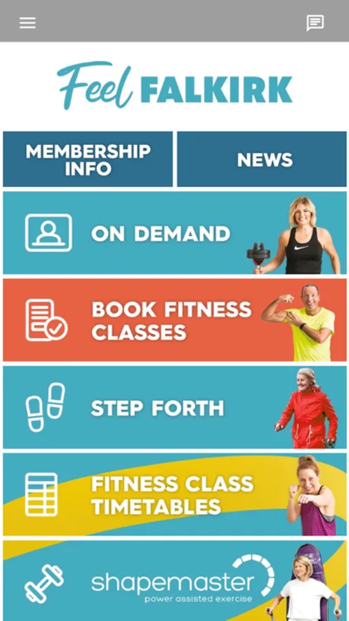 Falkirk Fitness app for live streaming of fitness classes, booking venue classes and other health and fitness information