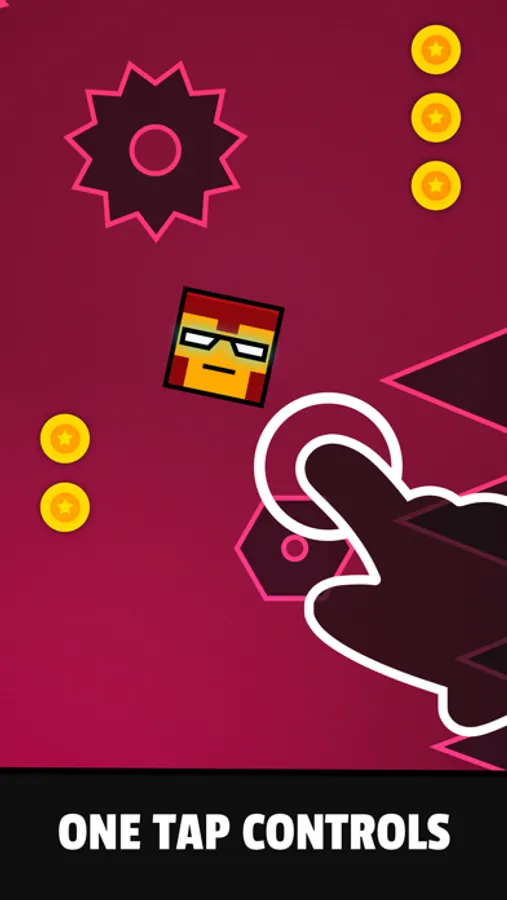 The controls in Geometry Clash Go! are as easy as a single tap, you need to tap to change the direction in which the character moves. Just collect the coins and avoid obstacles.