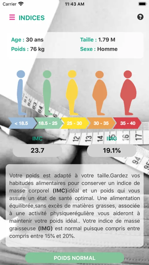 Grâce à YourBody, plus besoin de s'interroger. A partir de vos données personnelles, vous connaitrez instantanément :