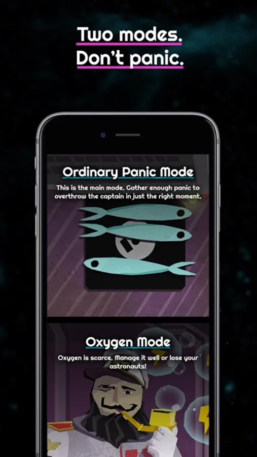 Each player controls a team of up to 4 astronauts with different abilities, possibly fooled by a murderous dolphin. During dangerous spacewalks the human players try to repair the sabotaged spaceship, unaware if their companion helps them or secretly wants to undermine the mission. The Captain’s command then decides about the fate of his crew members. But a crew in panic can easily overthrow his shifty captain!