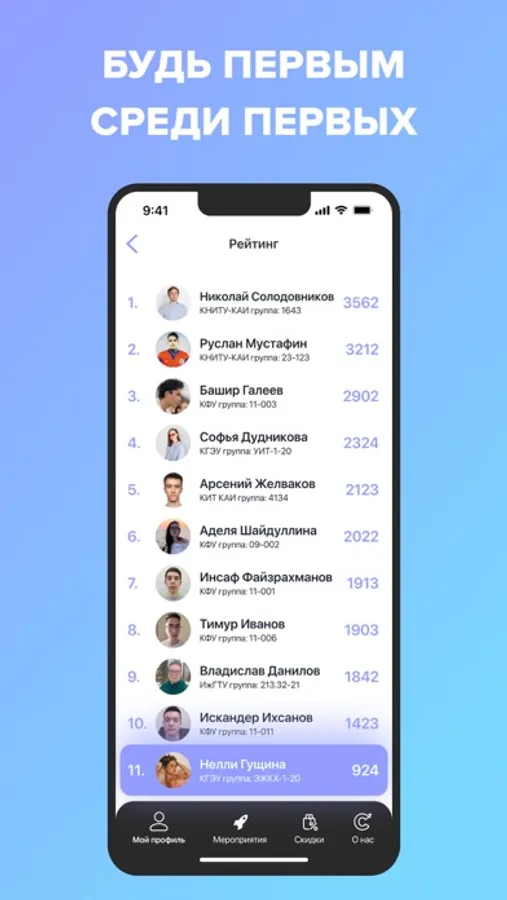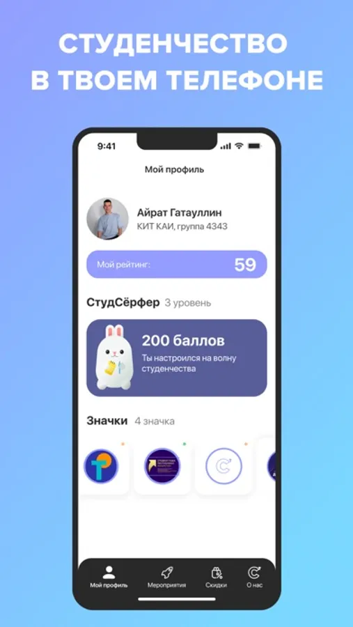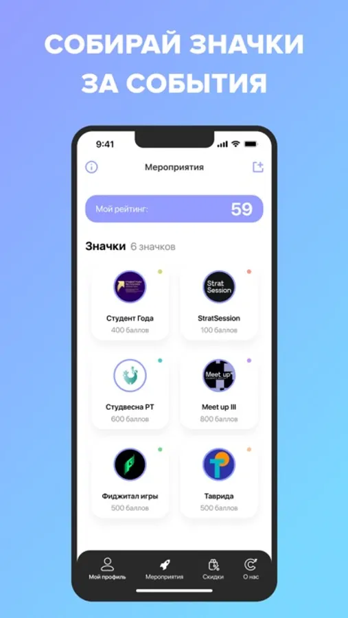 Выполняйте задания, участвуйте в мероприятиях и получайте значки рейтинга.