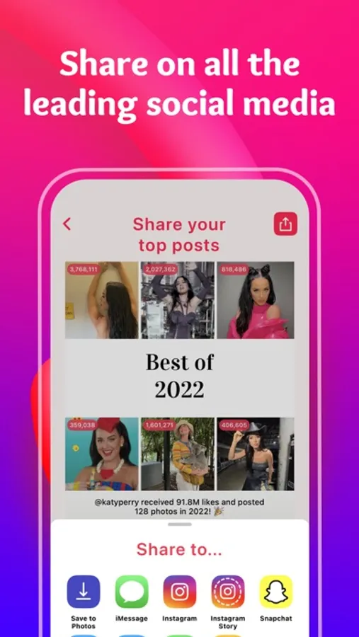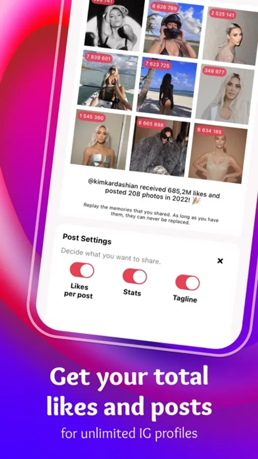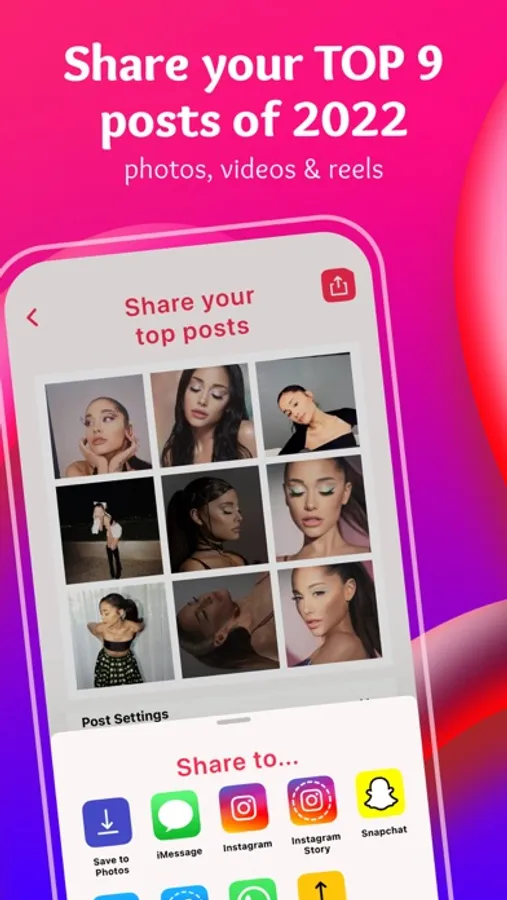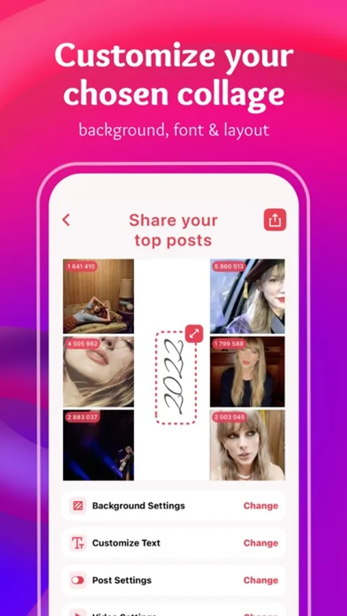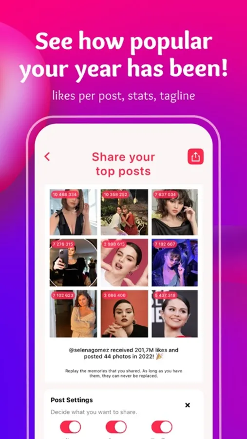 - With a year picker, you can generate collages of the TOP 9 Instagram moments from previous years, not just 2022.