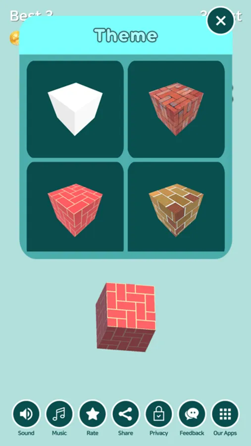 “This game improves the player's concentration power”. You just need to tap left of right arrow to adjust the block and drop it in the empty space to make it square, while rotating you can predict right position by using shadow of the block. It's super easy! However, as you pass the level, complexity and speed both will also increased, on each passed level you will earn ten coins, use this coin to restart the game and upgrade themes.