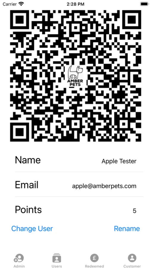 The app will also tell the user how many points they have, 10 points = a discount on next purchase at the pet shop