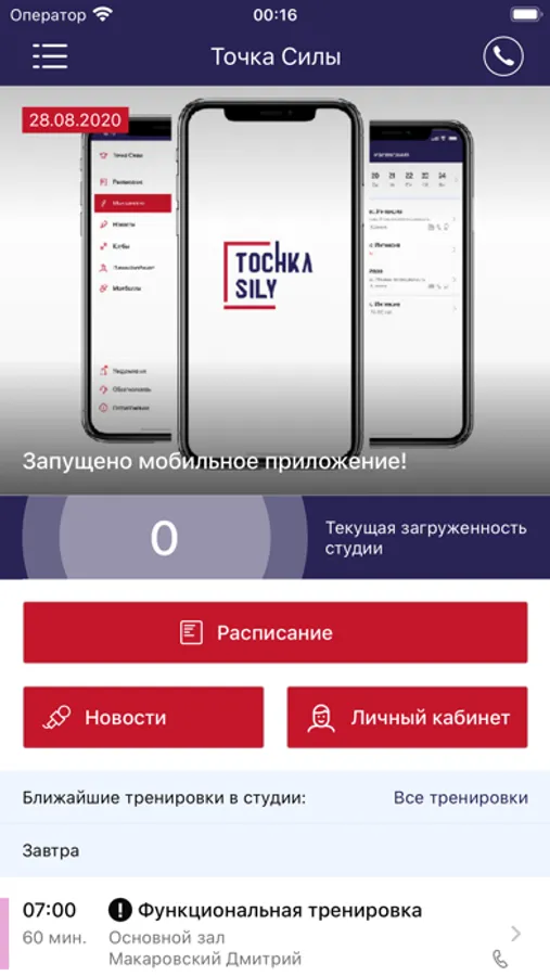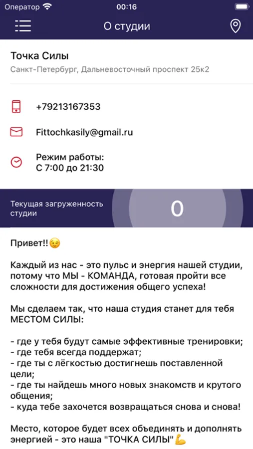 -получать информацию об изменениях в расписании и специальных предложениях студии