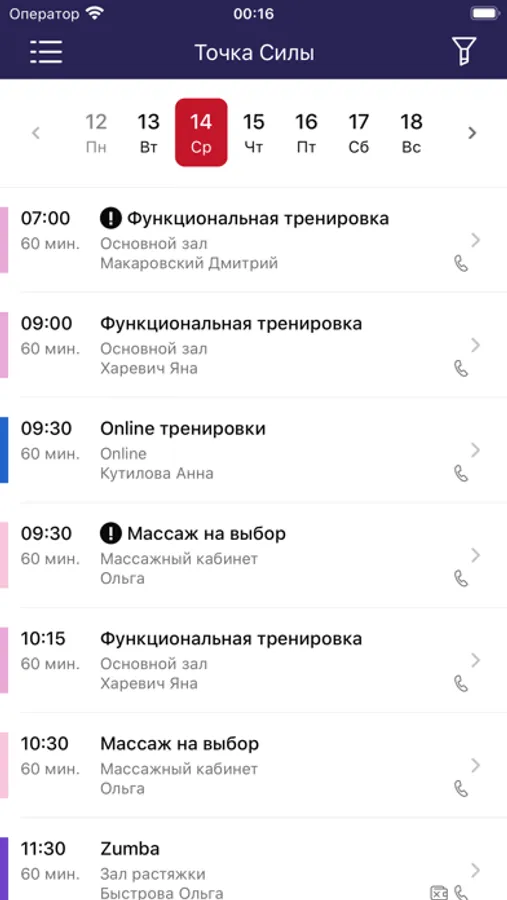 -составить личное расписание и внести в него групповые/персональные тренировки