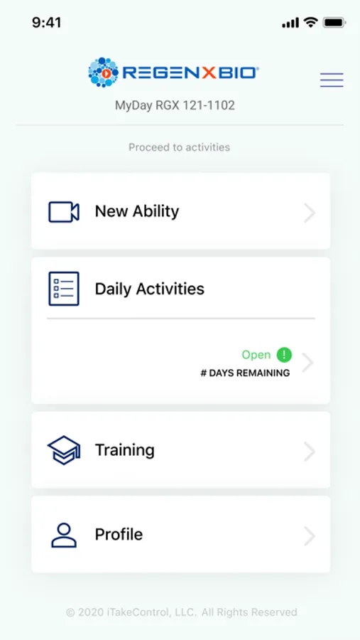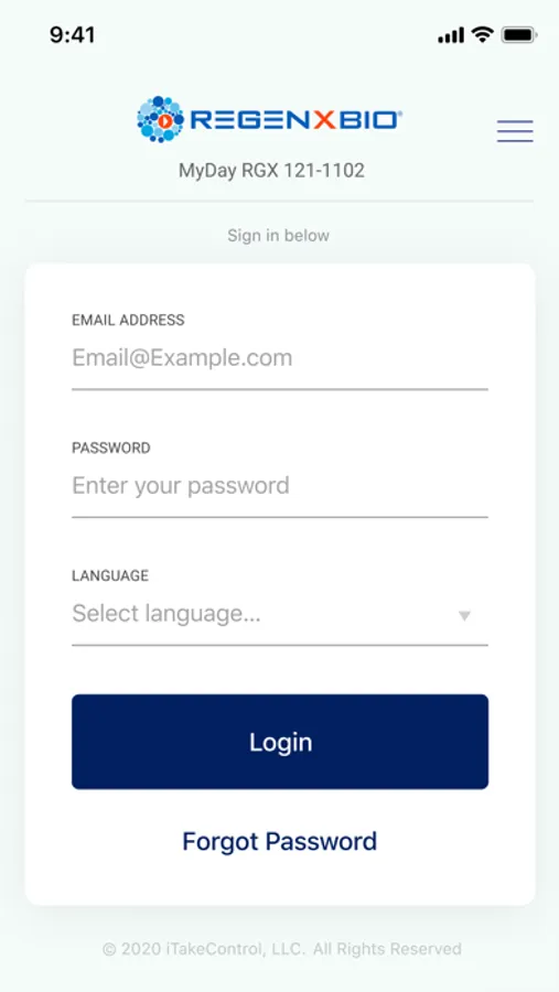This is a mobile app in support of the RGX 121-1102 Study. You will only be able to login and utilize this mobile application if you have been contacted and received an email invitation to register. This application is brought to you by iTakeControl, it is designed to allow participants to view training material and submit video responses.