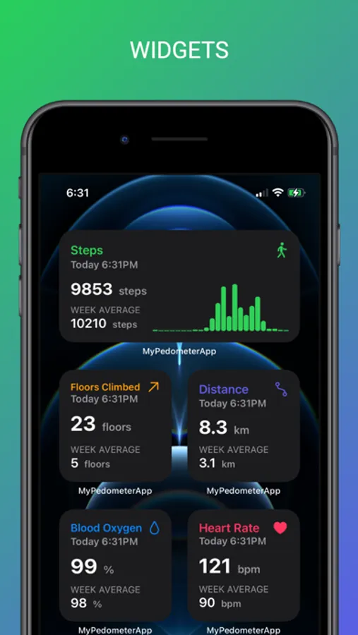 MyPedometerApp is an activity tracker app that lets you track your daily, weekly, monthly, yearly step count and other important health details using Apple HealthKit: