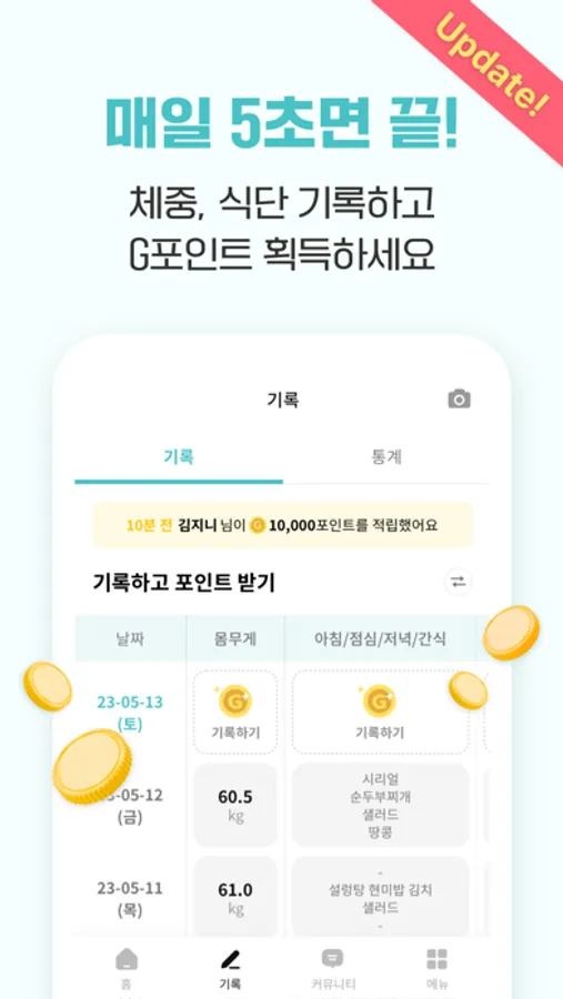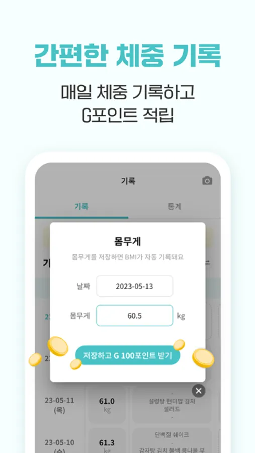 - 매일 체중기록하고 목표 몸무게를 달성해보세요