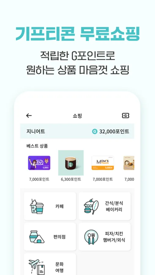 - 커피, 편의점, 베이커리 등 다양한 국내 유명 브랜드 기프티콘을 무료로 교환하세요