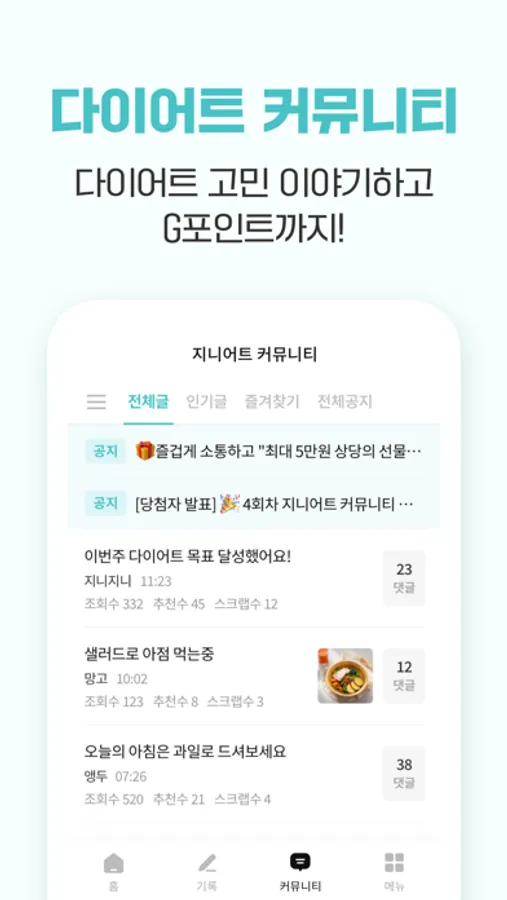 - 커뮤니티에서 다른 다이어터들과 함께 다이어트 고민 나눠요