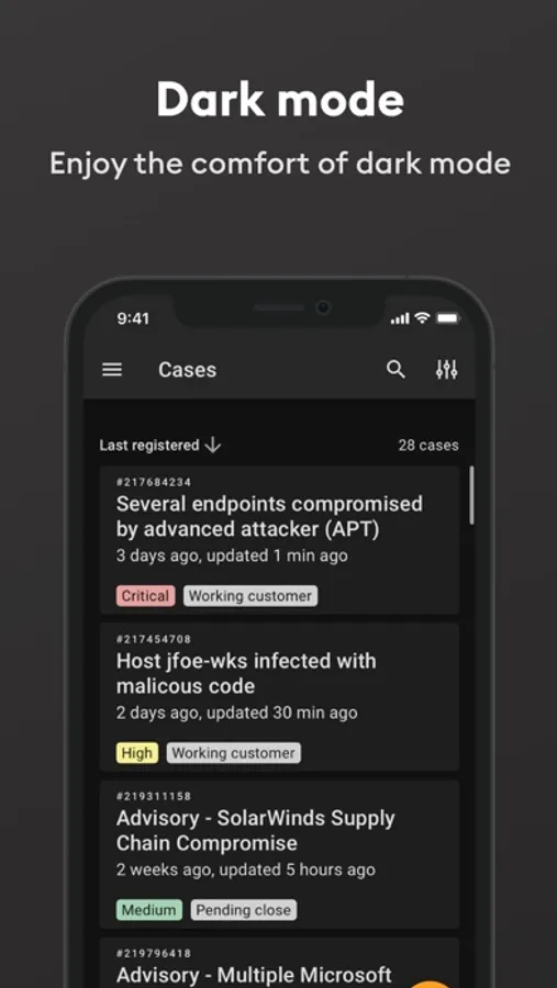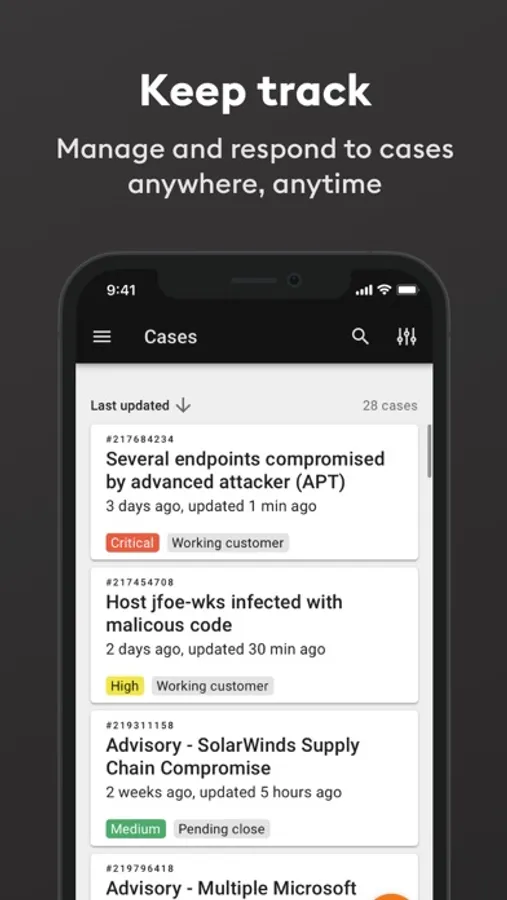 With Argus for Mobile, you can stay up to date as security incidents develop, dispatch cases to your team, and keep in touch with the mnemonic SOC anytime, anywhere.