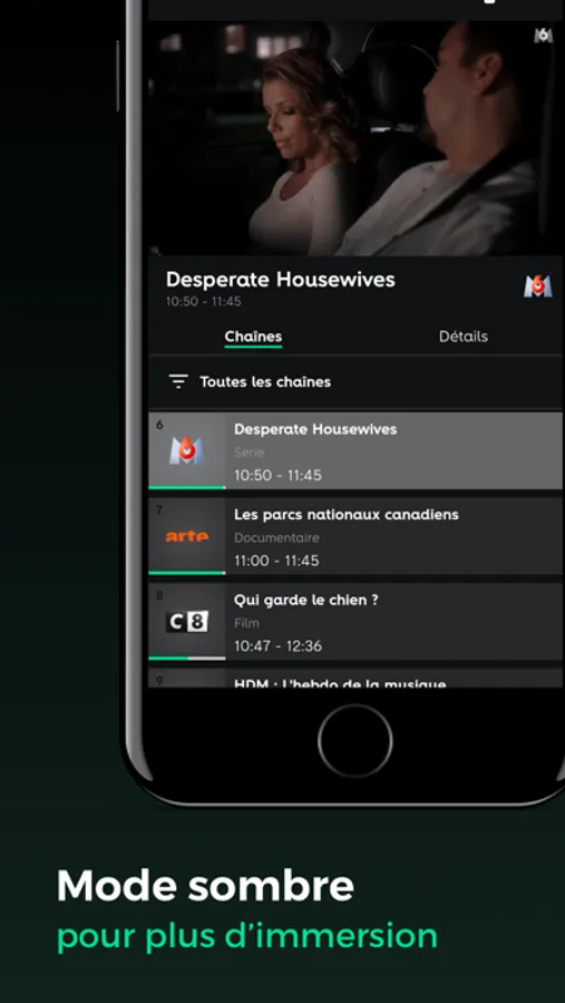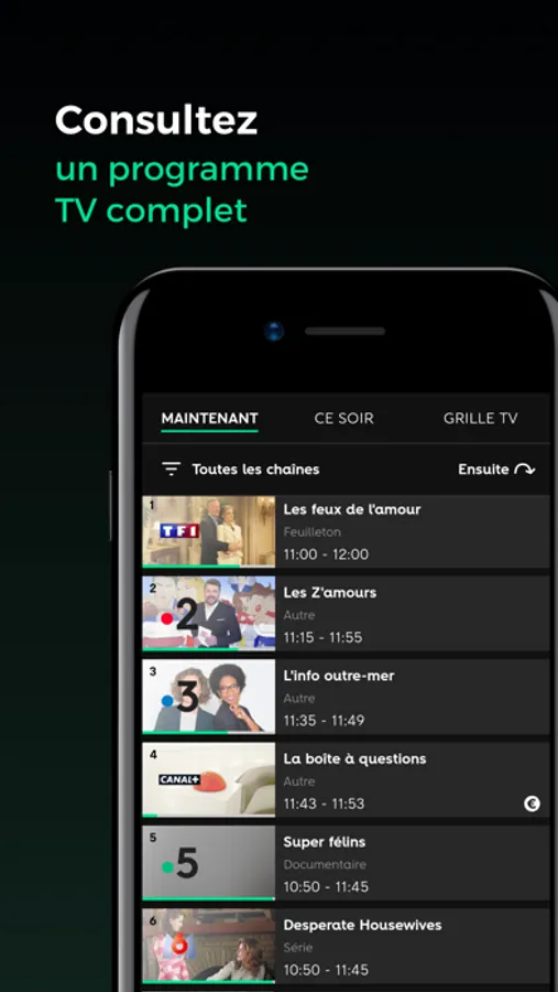 • Suivez et consultez les programmes TV diffusés en direct grâce à un guide complet des 35 chaînes qui font parties de votre abonnement (1)