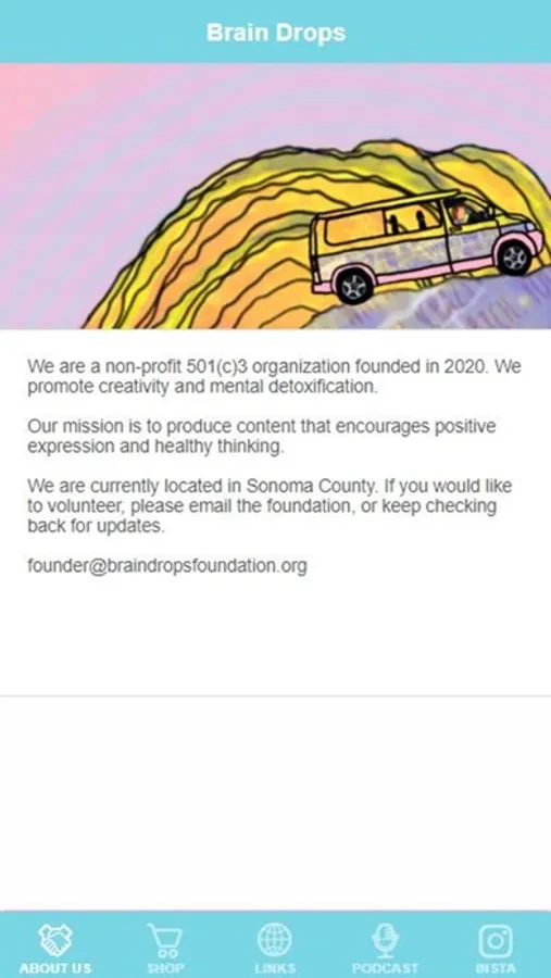 This app is intended for people who are interested in keeping up with The Brain Drops Foundation. This is a non-profit organization that promotes creativity and mental detoxification.