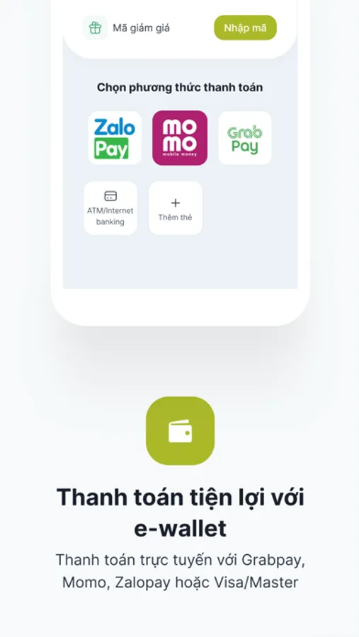 - Ví điện tử: Zalo Pay, MoMo, VNPay, Chuyển khoản ngân hàng
