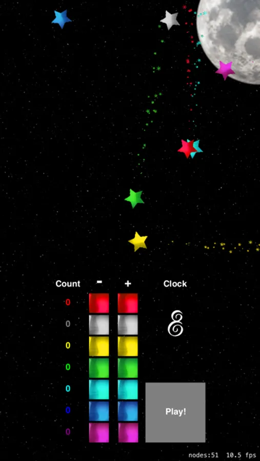 To play, count the number of leading shooting stars (the BIG stars) traveling in the galaxy.