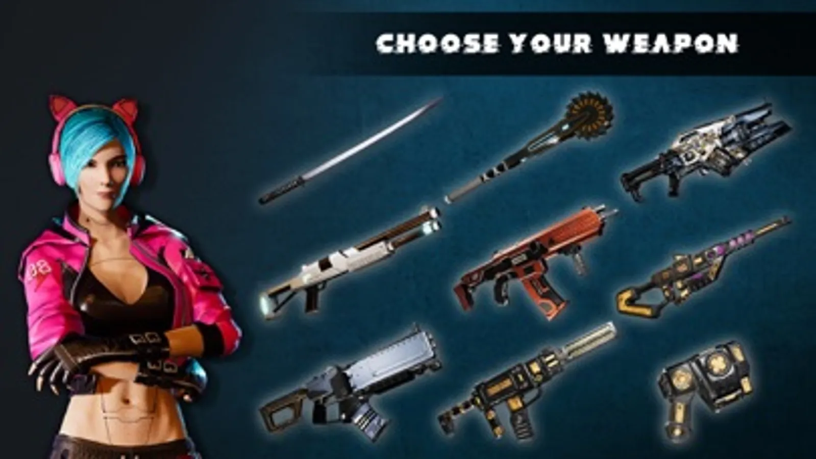 • Buy tons of various weapons. You can choose from cyber swords, rifles and many more.